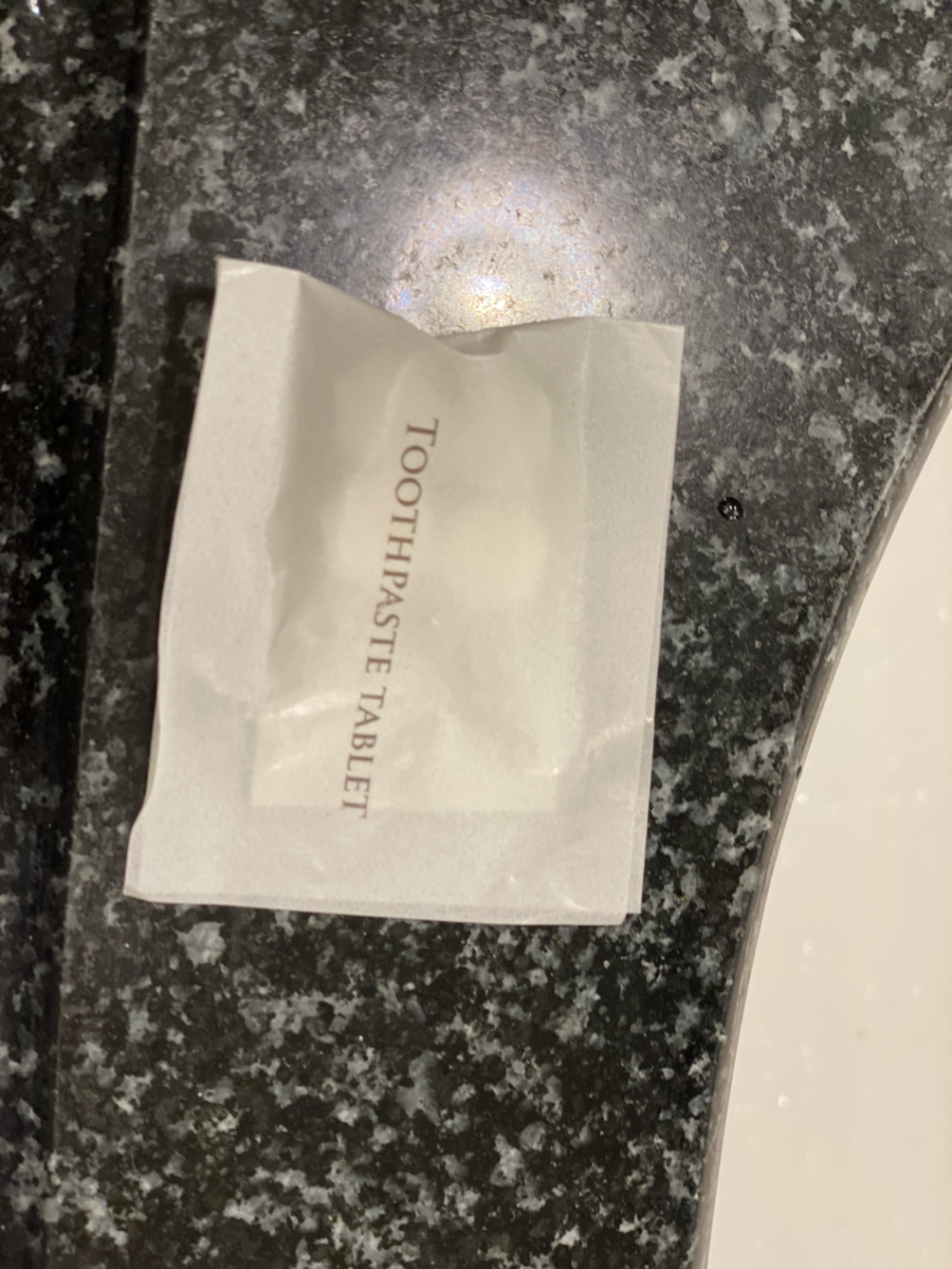 치약도 못찾아서 봤더니 이런 알약같은 치약이 있었다. 씹으면 치약처럼 된다. 자칫 모르는 사람은 먹을수도 있겠다는 생각이 들 정도였다.