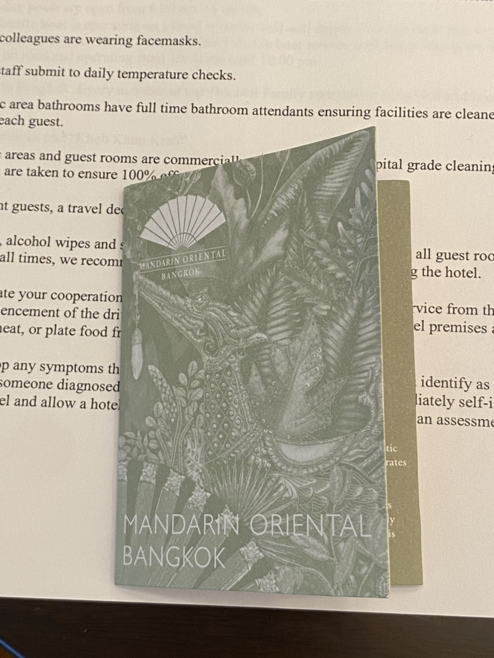 카드키도 너무나 예쁘다. 만다린 오리엔탈 방콕에서는 버릴게 하나도 없다. 모든걸 다 소장하고 싶을 정도다.