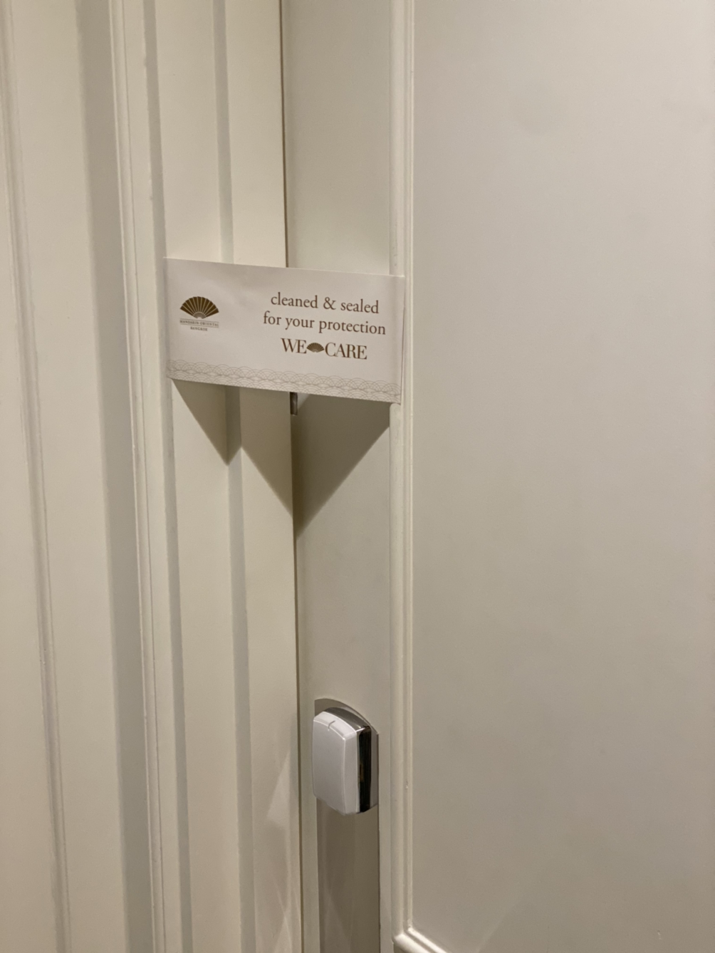 코로나로 클린을 완벽하게 했다는 종이 스티커가 붙여져 있다.