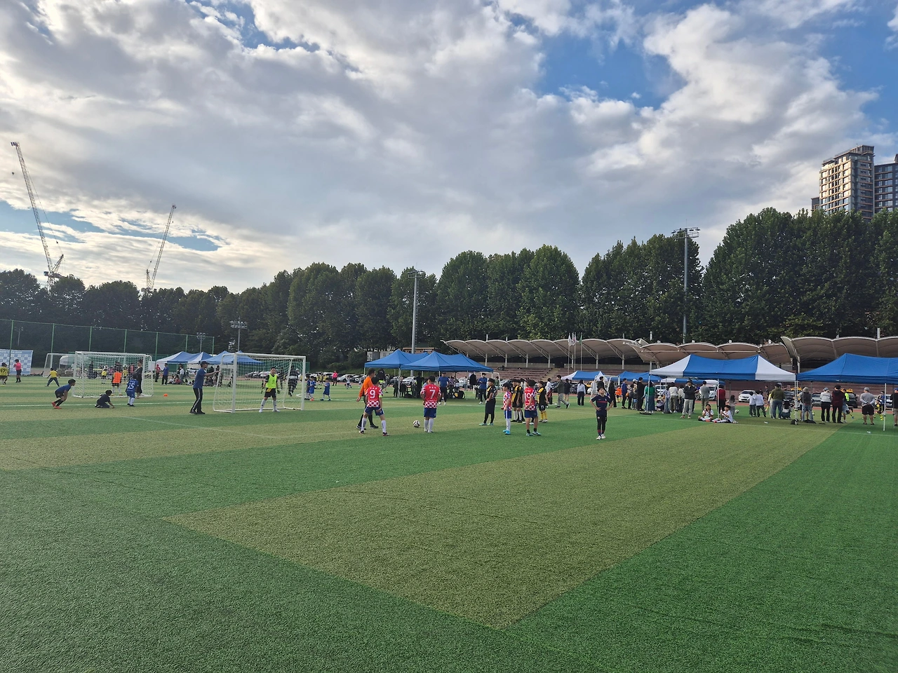 자신의 팀만 아니라 다른 팀도 응원하는 부모와 아이들의 응원소리가 뒤범벅되어 활기차다.