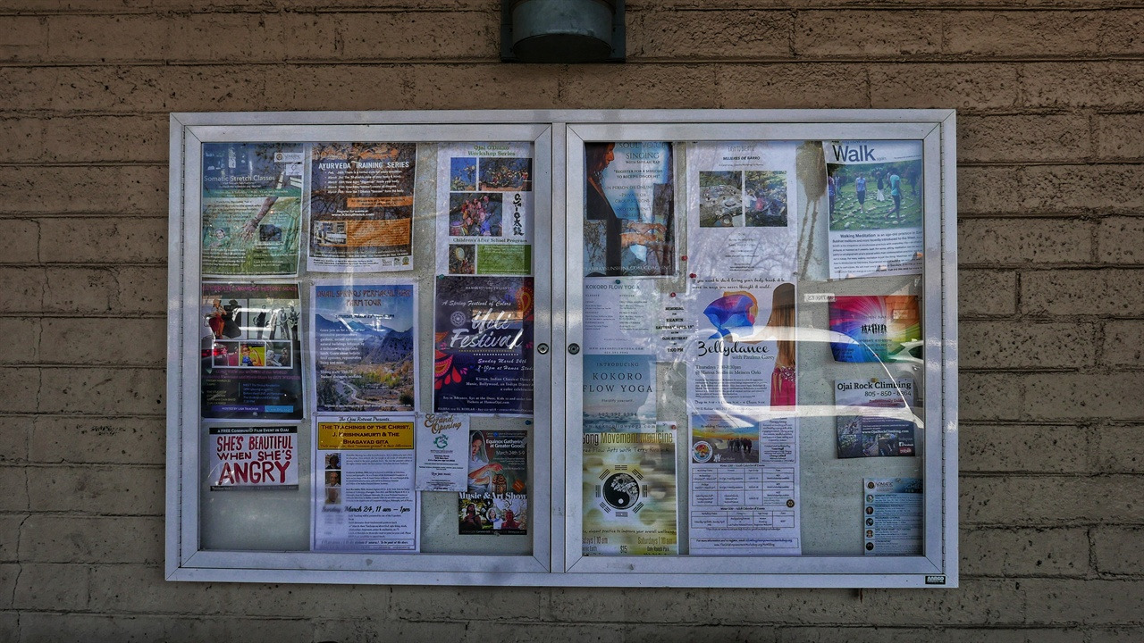 마을 곳곳에서 명상, 요가 모임이 활발히 열린다. 다운타운에 있는 마트 앞 게시판에는 영적 축제, 인도 명상, 걷기 명상, 요가 모임을 한다는 광고지가 촘촘히 붙어있다. 그 가운데 태극 문양에 기공(Qi Gong)이라고 써진 광고지가 눈에 들어왔다. 자세히 보니 종이 오른쪽 상단에 연필로 '오후 3시'란 한글이 암호처럼 작게 쓰여 있다. 여기서도 한국인이 살고 있나 보다.