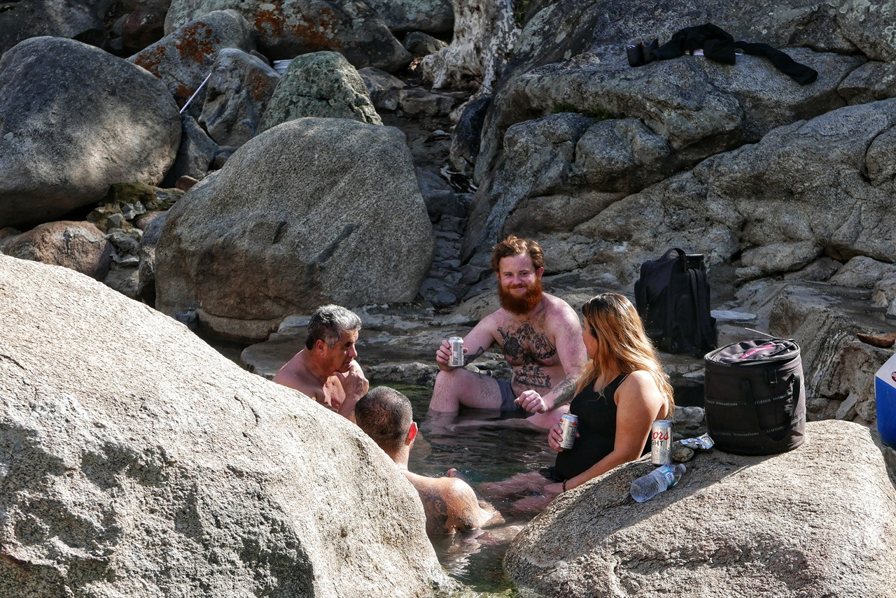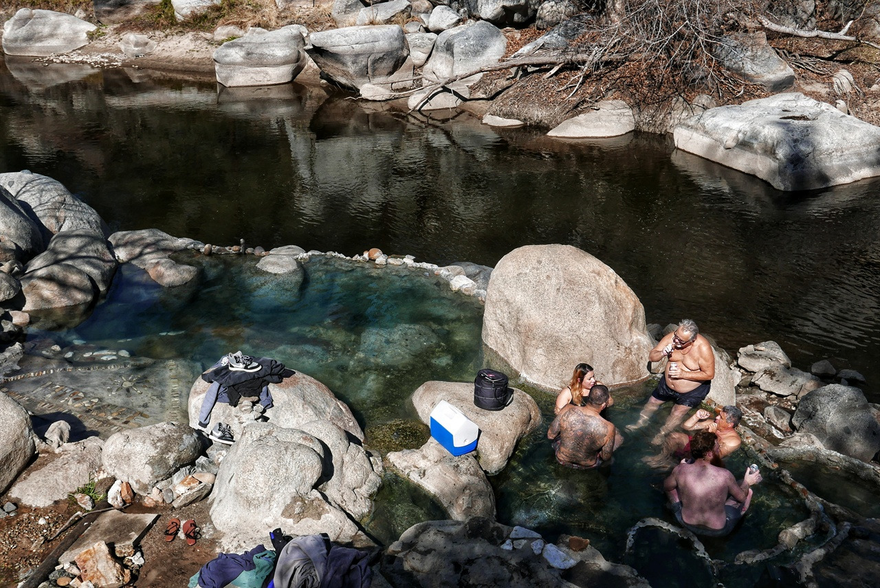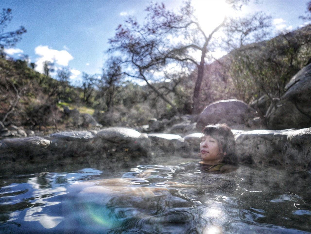 우리가 도착하기 전 온천에는 히스패닉계 에일라 커플이 먼저 와 가장 뜨거운 탕을 차지하고 있었다. 온천에서 남쪽으로 2시간 거리인 랭캐스터에 살고 있다고 했다. 커플은 손바닥만한 캠핑용 가스 버너에 물을 올려 차를 끓여 마시고, 물장구를 치며 좀처럼 명당에서 나오지 않았다. 에일라는 주말이면 이곳에 사람이 가득하다고 일러줬다.