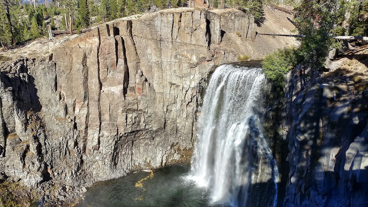 7만5천 년 전 용암이 흐른 자리에 31m 폭포수가 형성됐다. 캘리포니아 시에라네바다 산맥 동쪽에서 가장 높은 폭포다. 흐르는 물 때문에 계속 침식 작용이 일어나고 있으며 떨어지는 폭포수로 인해 늘 무지개가 걸려있다. 데블스포스트파일에서 이정표를 따라 4km 걸어 들어가면 폭포를 만날 수 있다. 사슴이나 다람쥐도 쉽게 볼 수 있다. 누구나 쉽게 걸을 수 있는 구간이다. 트레일에서 계단을 따라 폭포 아래까지 걸어갈 수 있다.