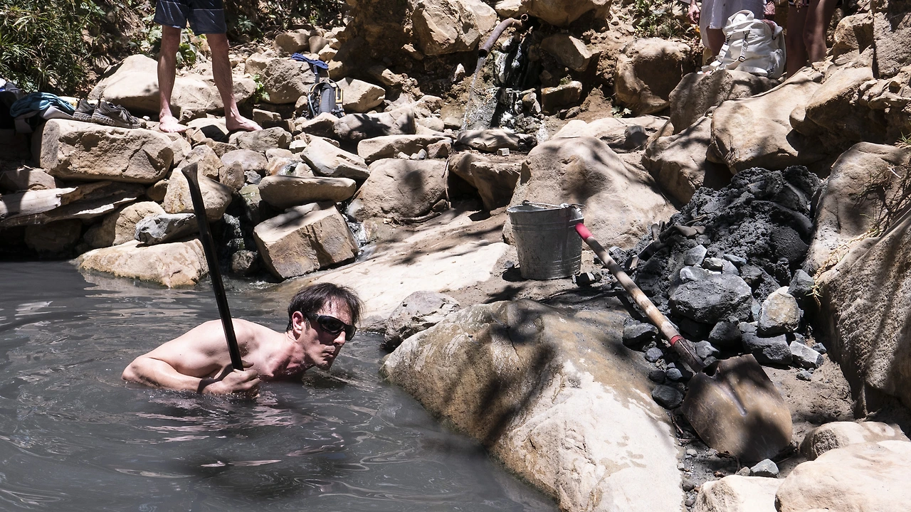 방문한 날 마른 체형의 백인 남성이 혼자서 계속 온천을 정비하고 있었다. 온천탕 바닥에 있는 진흙과 돌을 파내 바닥을 깊게 하고 주변 바위 돌을 굴려 온천탕 둘레를 단단히 했다. 그의 이름은 데렉. 4년 전 이 온천에 처음 와 깨끗한 물과 편안한 자연 환경에 반해버렸다고 했다.