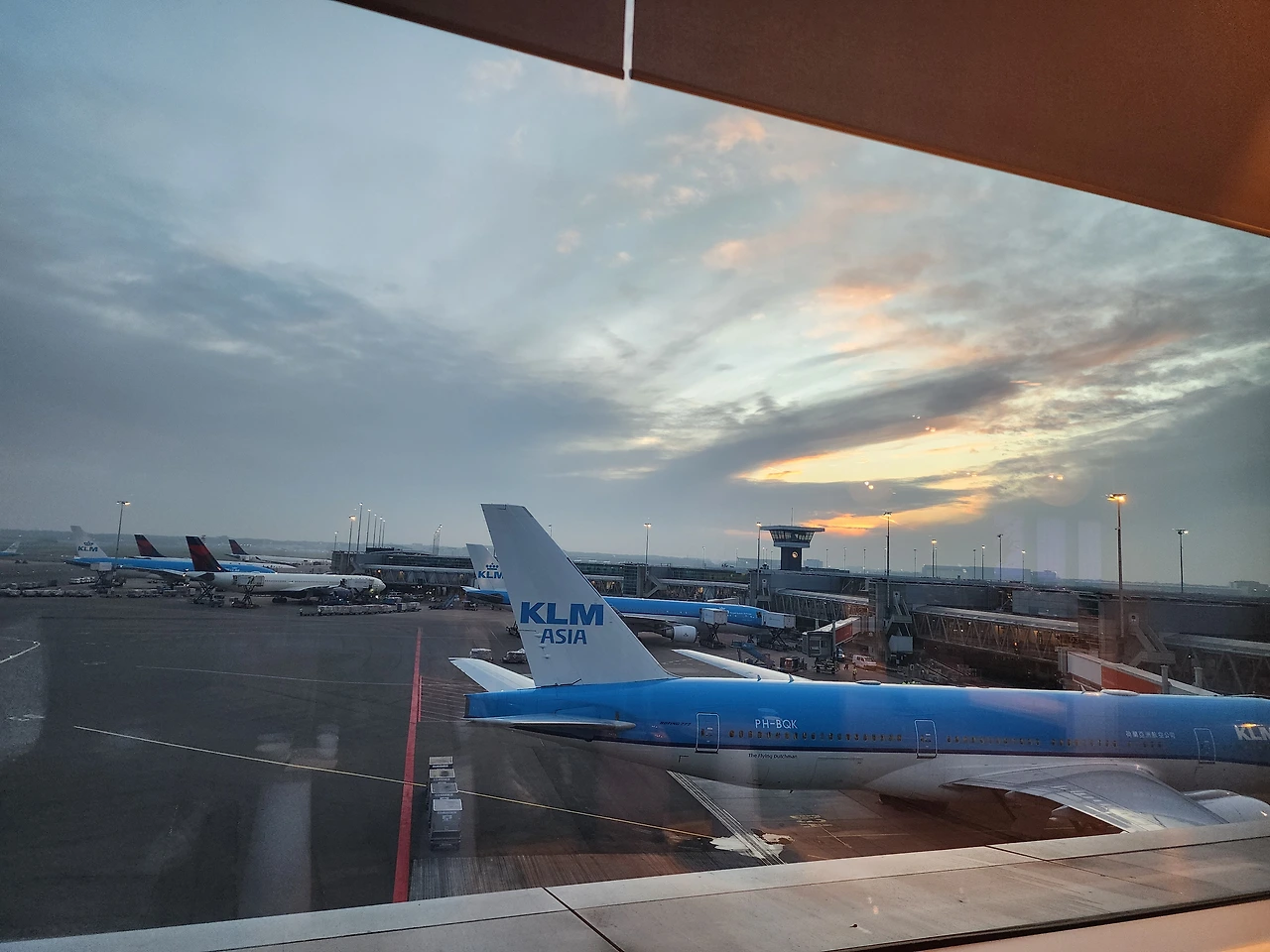 (경유지였던 네덜란드 스키폴공항에서 맞이했던 여명.