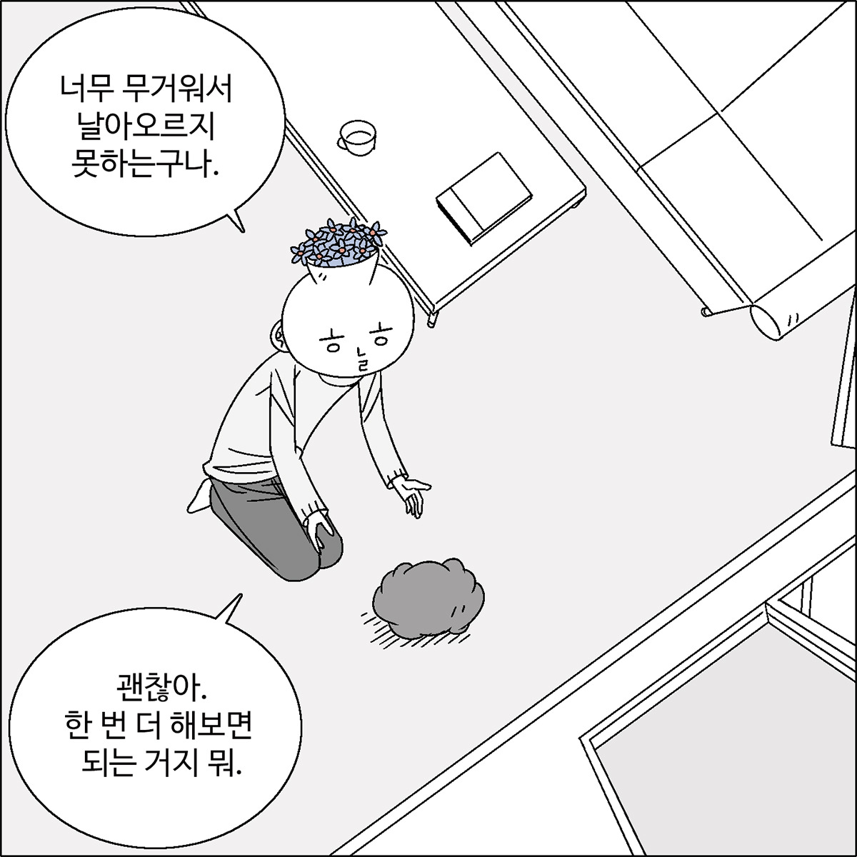 바닥에는 밤새 내려앉은 우울의 낙진이 깔려있다