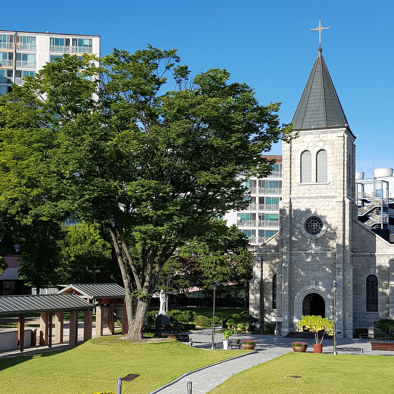 죽림동성당 | 골목 맞은편에 있는 100살 넘은 성당. 돌로 만든 성당 지붕에서는 정각마다 종이 울리고, 뒤뜰에는 이곳에 머물다 신의 곁에 먼저 이른 성직자들의 묘지가 있다.