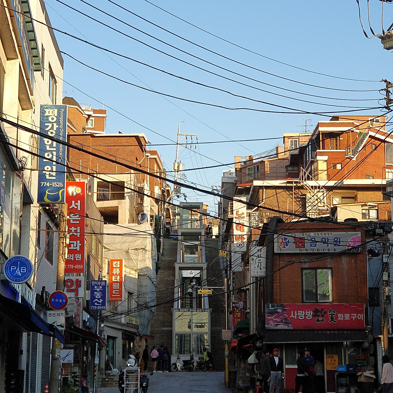 약사리는 큰길을 두고 양갈래로 언덕이 나뉘는데, 그중 서쪽 언덕이 망대골목이다. 골목 꼭짓점에는 이름처럼 낡고 아담한 전망대가 있고, 그 아래로 구불구불 좁은 길이 몇 갈래로 나 있다. 녹슨 마을에는 대개 어르신들만 남아 있지만, 겹겹이 쌓인 지붕 사이사이로 펼쳐지는 하늘만큼은 청춘처럼 푸릇하다. 이 다정한 골목은 한 때 재개발 구역으로 지정돼 아파트가 들어설 예정이었다가 최근 개발 계획이 취소되며 헐리지 않고 남게 되었다.