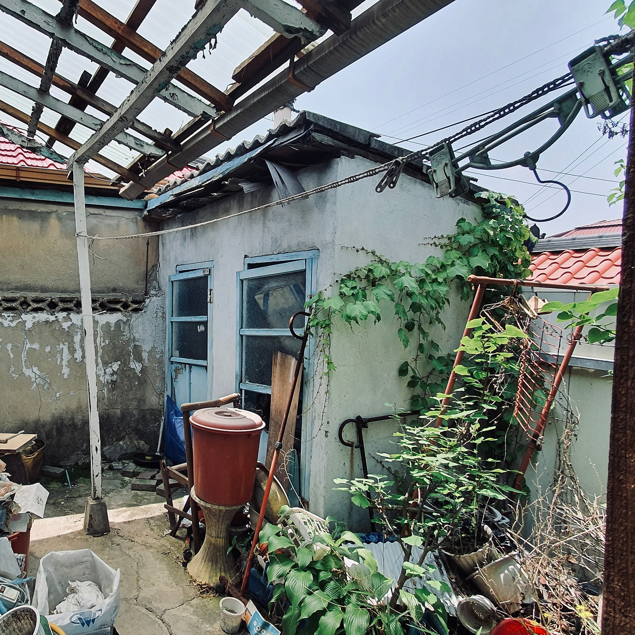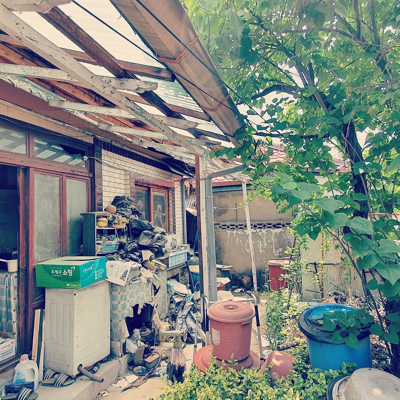 정체성을 세웠으니, 다음은 실행계획을 세워야겠죠? 우선 무너지고 부서진 집에서 보전할 가치가 있는 물건들부터 골라내기 시작했습니다. 다행히 몇 가지 남길 만한 것들이 눈에 띄더군요. 예컨대 지붕을 구성하는 나무판들은 거의 썩거나 부서졌지만, 대들보만큼은 단단하게 살아 있었습니다. 또 마당에는 집과 동갑이라는 60살 된 라일락 나무가 여전히 푸른 이파리를 힘차게 돋우고 있었어요. 육남매가 옹기종기 웅크려 앉은 듯한 모양새의 크고 작은 장독대들도 녹슬었지만 깨지지 않고 세월을 버텨내고 있었답니다. 낡은 방문 역시 손잡이에 못이 빠져 덜렁거렸지만 그런대로 건재했지요. 이렇게 살릴 수 있는 것들은 어떻게든 살려보기로 마음먹었습니다.