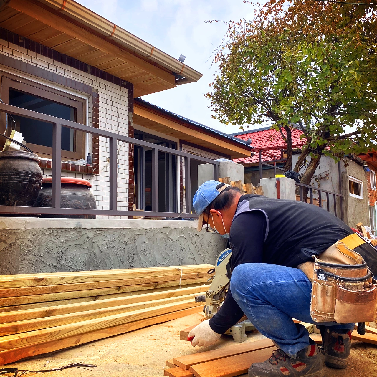 이렇게 설계를 마치고, 9월 말부터 시공에 들어갔습니다. 물품들을 치우고 부술 것들을 다 부수니 앙상한 집의 뼈대만 덜렁 남더군요. 그렇게 집을 발가벗기고 나니, 그제야 60년간 고택을 지탱해온 숨겨진 가치들이 고아하게 드러났습니다. 껍질은 다 벗겨졌지만 여전히 썩은 지붕들을 든든히 떠받치고 있던 대들보. 꺼진 땅 밑으로 기둥이 무너지는 걸 막아내고 있던 돌받침들. 투박하게 생긴 그들이 보이지 않는 곳에서 버텨내주고 있었기에, 이 낡은 폐가는 60년의 세월을 버텨 저와 조우할 수 있었겠지요.집을 해체하는 과정은, 그래서 눈에 보이는 것들이 아닌 보이지 않는 것들에게 존경심과 애정을 헌사하는 시간이었답니다.