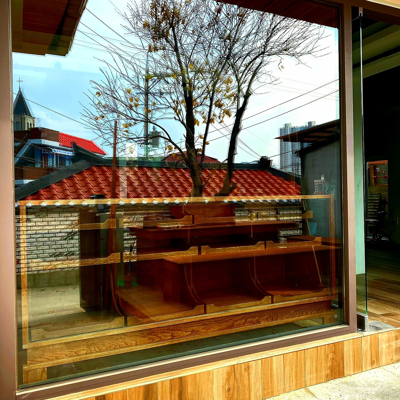 첫서재에 문을 열고 들어오시면, 나무로 만든 진열장이 처음 여러분을 반길 거예요. 어른 허리춤 높이의 진열장에는 12칸의 서랍이 가지런히 매달려 있답니다. 마당에서는 서랍 속이 훤히 들여다보이고, 실내에 들어오면 서랍을 열어볼 수 있는 구조이지요. 신인 가구디자이너 송영규 님에게 의뢰해, 이틀간의 회의와 한 달의 제작 공정을 거쳐 탄생한 진열장입니다.