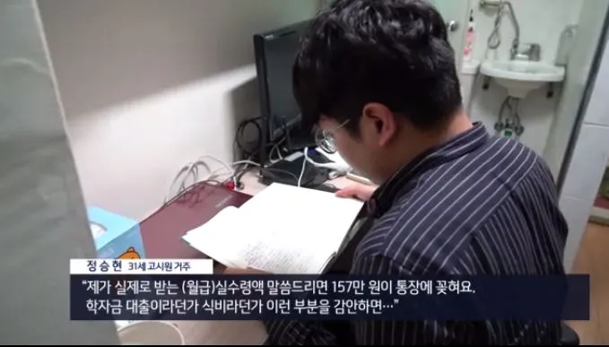 30대 직장인 한 분을 만났습니다. 그는 졸업 전부터 지금까지 5년째 고시원에 살고 있습니다. 월세는 46만 원. 보증금 낼 목돈을 모으지 못해 계속 고시원에 눌러앉아 있는 겁니다. 매달 통장에 찍히는 월급은 실수령액으로 147만 원. 월세 내고, 학생 때 빚졌던 학자금 대출 갚아나가고, 생활비 쓰고 나면 목돈 모으기란 사실상 불가능했습니다. 그는 고시원 생활에서 언제 탈출할 수 있을지, 미래가 보이지 않는다고 털어놨습니다.