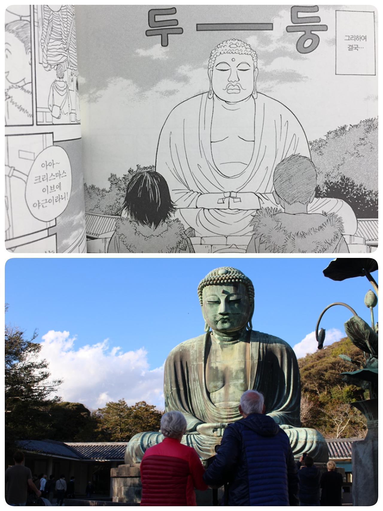 만화에서는 소년소녀의 뒷모습이었는데, 노부부가 마침 그 자리에 서 있어 뒷모습을 찍어봤다. 양해를 구하지 않고 찍었는데 뒷모습이니 괜찮겠지. 노심초사하긴 하다.