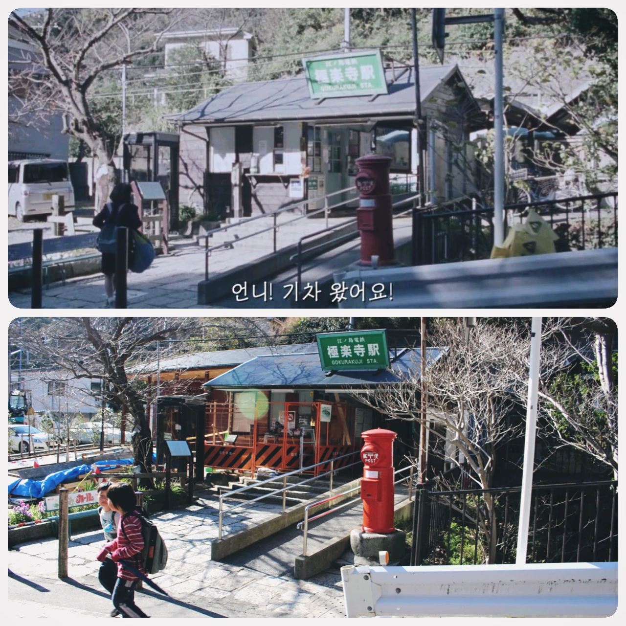 네 자매의 출근 혹은 등굣길이었던 전차역. 가마쿠라의 명물인 동네 전차 ‘에노덴’을 타고 내리는 곳이다.