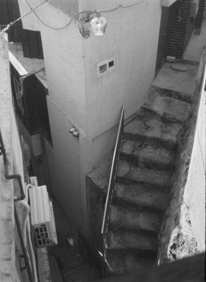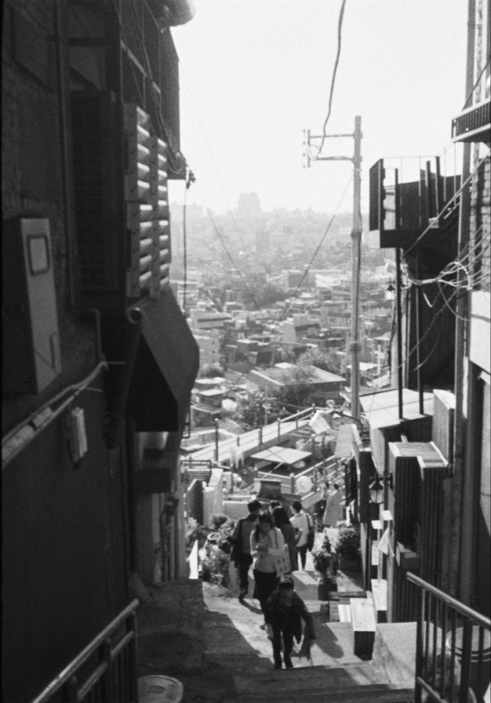 이 108계단을 내려오면 아랫마을이자 평지다. 108계단을 오르내리는 승강기도 있다. 사진을 보면 알겠지만 노출도 셔터스피드도 초점도 다 엉망이다. 이렇게 사진이 엉망인 걸 인화한 뒤에야 확인할 수 있다는 답답함이, 바로 필카의 뭉근한 매력이다.