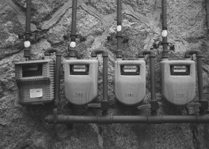 전력량계가 벽 하나에 다닥다닥 붙어 있다. 분명 누군가의 벽일 텐데, 자리를 한 뼘씩 내어준 듯.