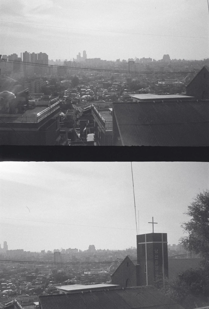 흑백필름은 색을 밝은 것과 어두운 것으로만 나눈다. 하지만 밝음과 어두움 사이에는 수만 프레임의 밀도가 있다. 거기에 흑백필름의 매력이 숨어 있는 것 같다. ‘빨간색, 파란색’처럼 색깔의 이름이 있는 건 아니지만, 분명히 세상에 존재하는 색들이다. 언어로 표현할 수 없는 그 색들, 이를테면 아주 살짝 하얀색, 덜 하얀색, 조금 어두운 색, 살짝 검은색, 되게 검은색 같은 것들로 세상이 그럭저럭, 때로는 충분하게 표현된다.