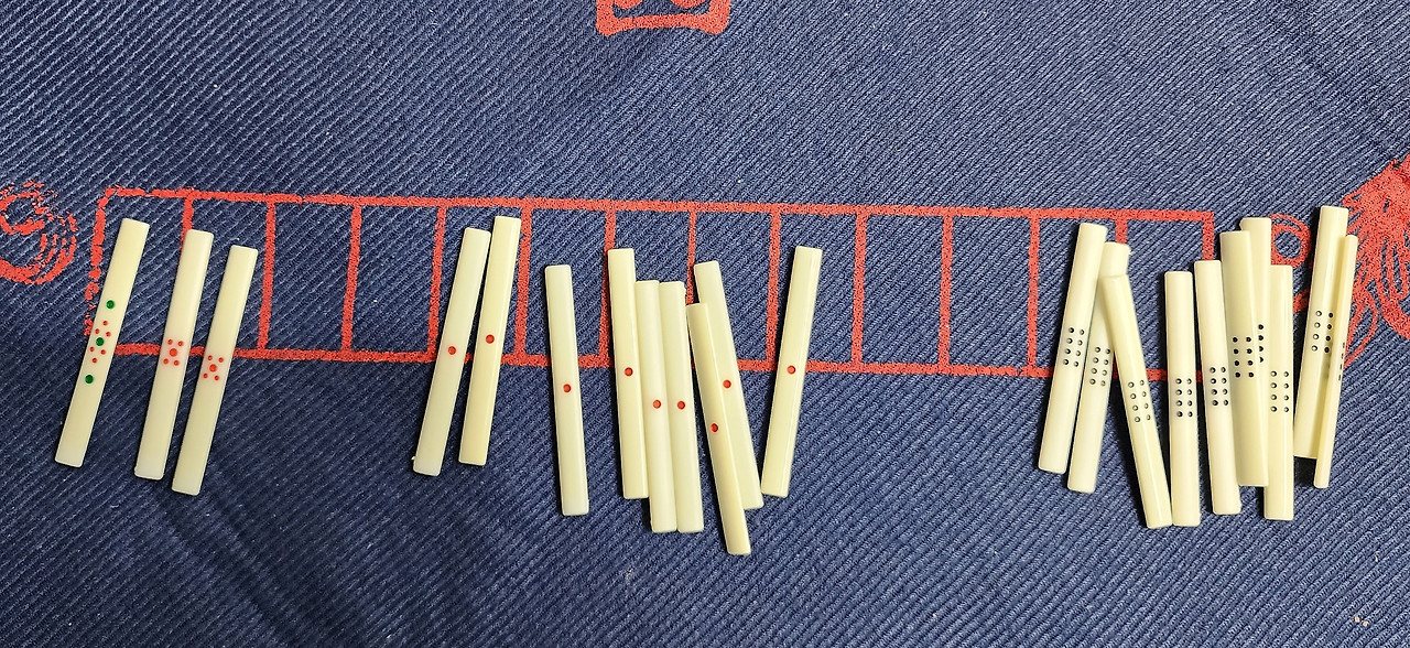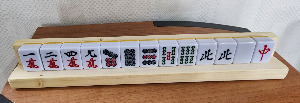 4. 마작패 받침대 : 이것은 파는 물건이 아니다. 사촌동생 집에서 마작을 할 때 우연히 봤는데 그 쓰임새가 기가 막히게 좋았다. 사촌동생은 마작동호회에서 얻었다고 했다. 우리 팀의 멤버 중 한 분이 아는 목수에게 제조위탁을 해서 우리도 구했다. 마작받침대가 없으면 손패를 탁자에 세워야 한다. 탁자에 세울 때 패를 쓰러뜨리기 쉽다. 또한 마작은 13개의 손패를 앞에 세워놓고, 패산에서 1개를 가져오고(쯔모), 1개를 버리는 행위(타패)를 계속하여 되풀이 하면서 게임을 하는 것인데 쯔모를 하지 않고 타패를 하거나(소패) 쯔모하고 타패하는 것을 잊어버리거나(다패) 하는 반칙을 자기도 모르게 하는 경우가 있다. 그러나 마작패 받침대가 있으면 그런 실수를 줄일 수 있다.