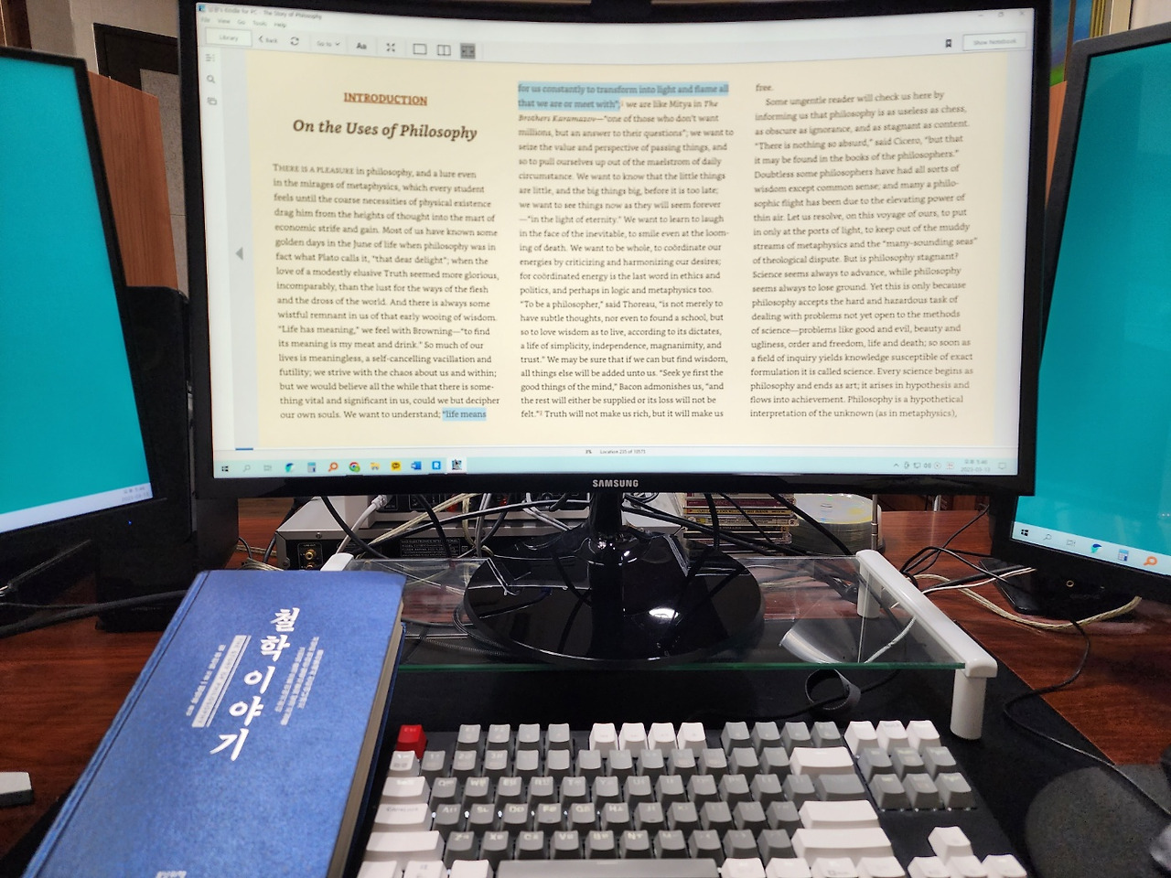 킨들로 열어보았다. 넓은 PC 모니터 화면에 텍스트가 시원하게 펼쳐졌다. 요즘 시간도 많으니 철학이야기의 원서 읽기를 미룰 이유가 없어졌다.