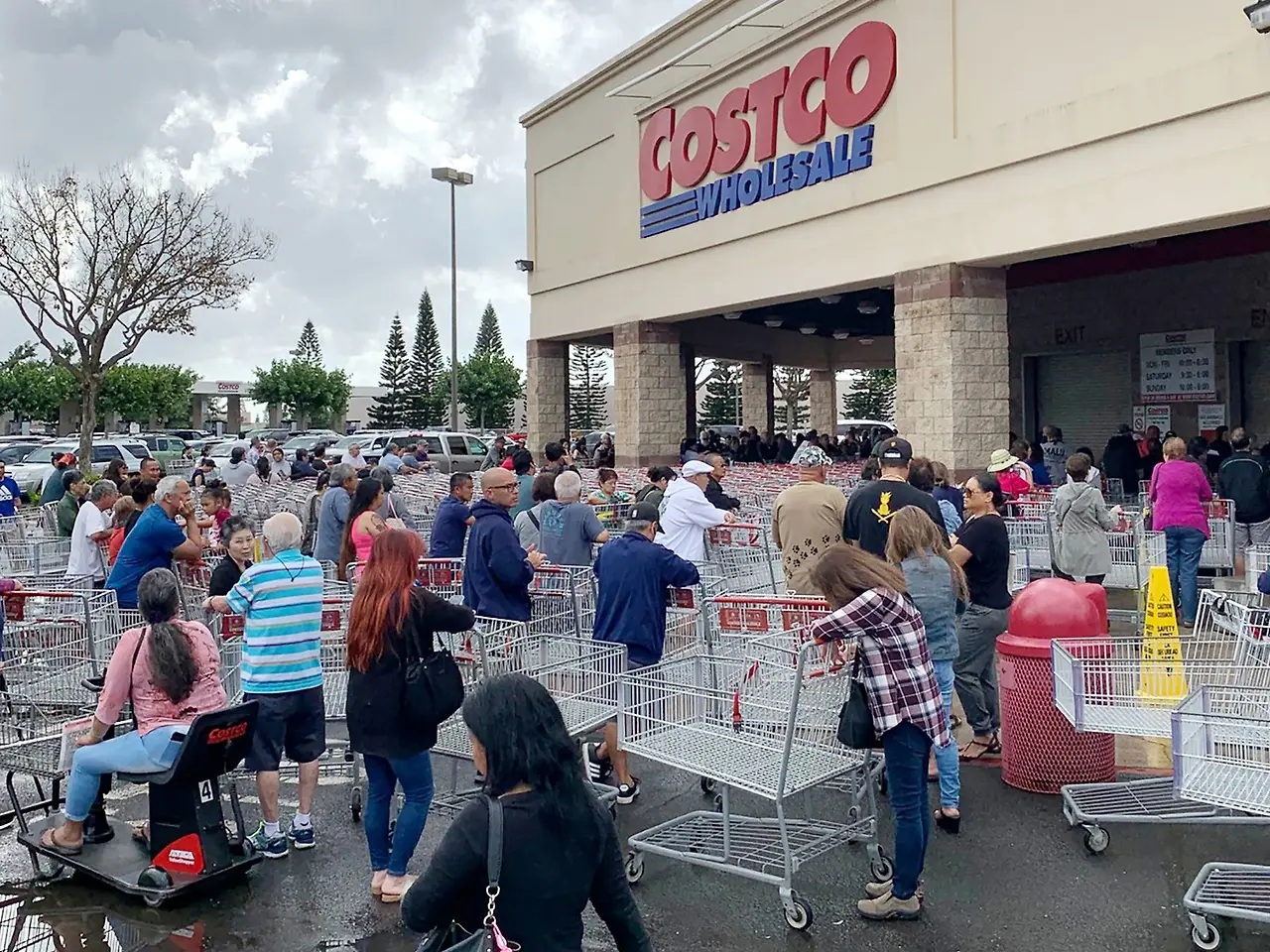 사진. 2020년 2월 28일 미국 하와이 호놀룰루 코스트코 입구에 비상용 식료품과 생활용품 구입을 위해 몰려든 쇼핑객들. Courtesy of Duane Tanouye via REUTERS