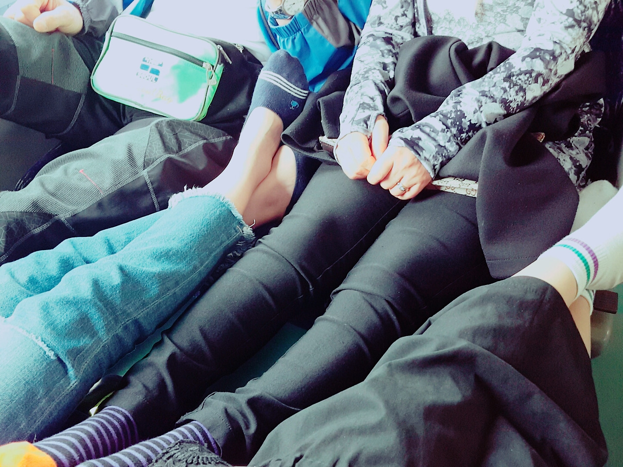 무궁화호 좌석을 돌려 넷이서 마주 앉아 다리를 쭉쭉 펴고 편하게 먹방을 시작했습니다. 역시 여행의 시작과 끝은 주.전.부.리. 기차를 타기 전부터 햄버거, 김밥, 음료수, 맛밤, 과자, 삶은 달걀, 견과류... 등등 입이 쉬질 않았다고 합니다.