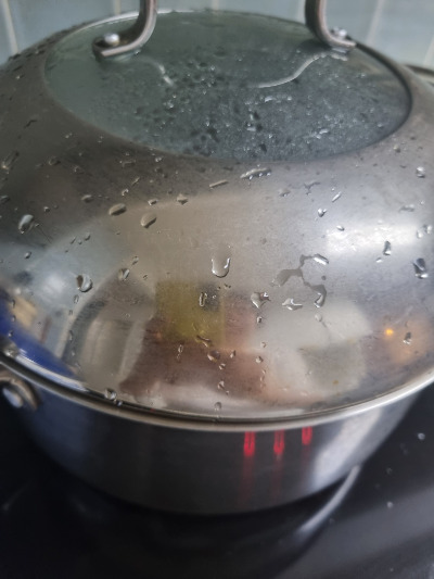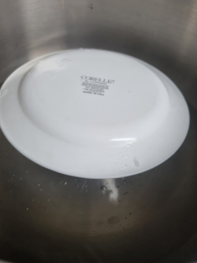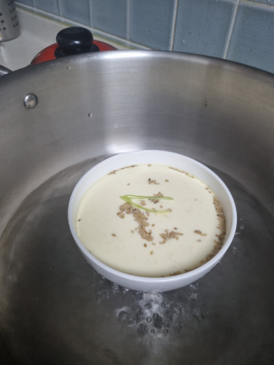 냄비 뚜껑 닫기 전에 접시로 덮어주세요. 자완무시 그릇 있으시면 편리하시겠죠. 접시 덮고 뚜껑 덮어서