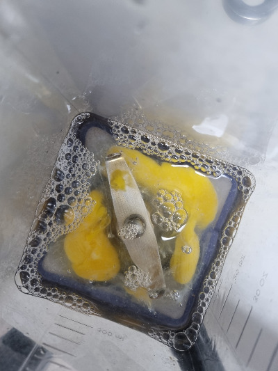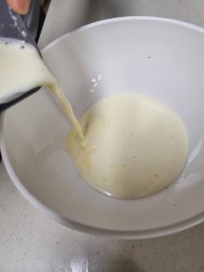 물과 계란을 믹서에 넣고 갈아? 주세요. 이렇게야 알끈이 잘 제거된다고 하네요.