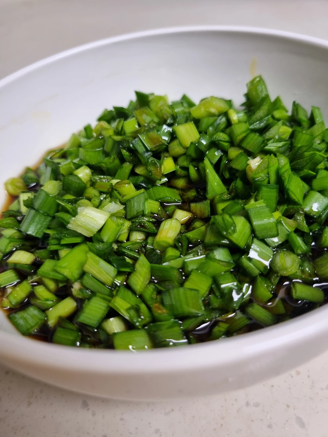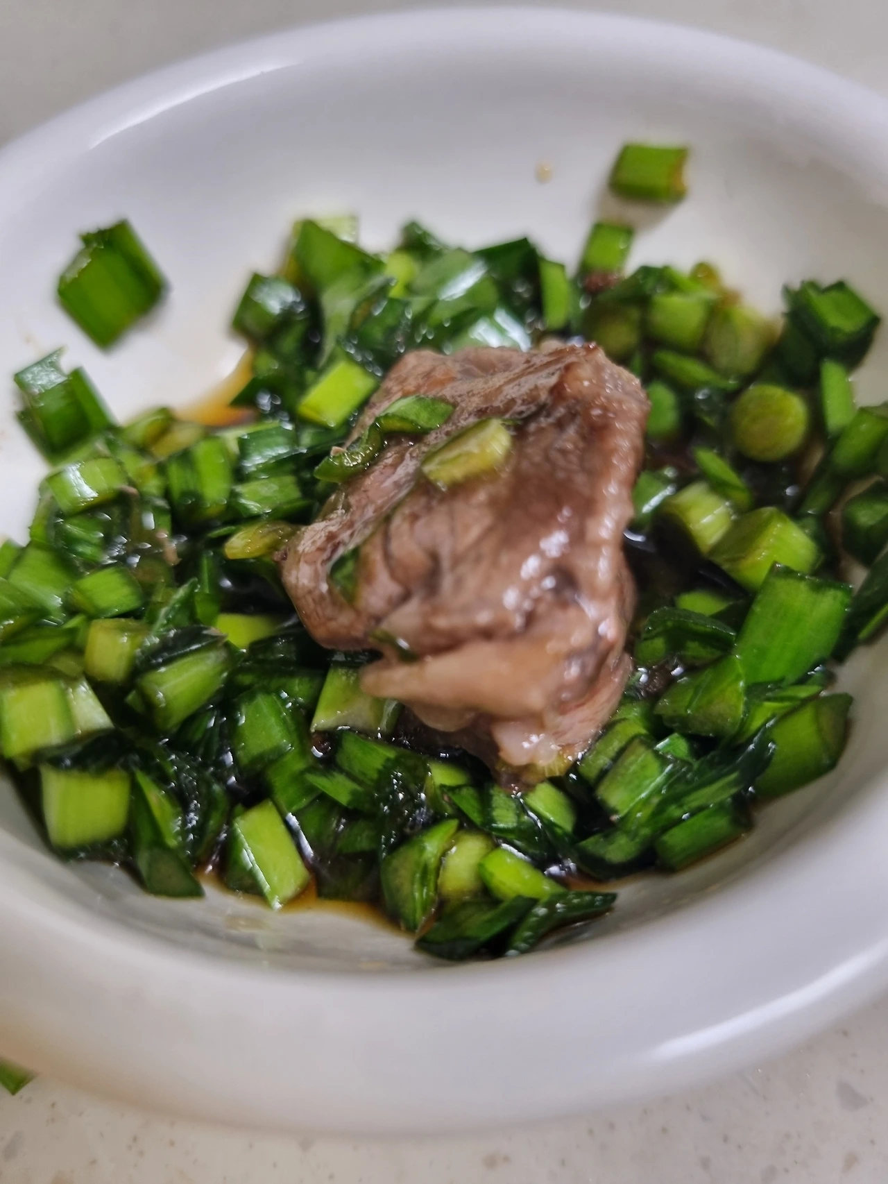 식은 간장과 부추를 섞어주세요 간장에 두배분량의 부추가 적당한 듯합니다.