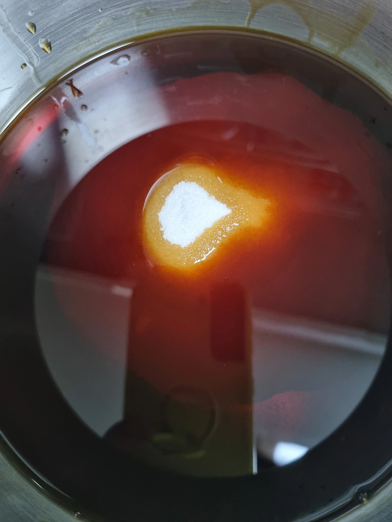 설탕이 녹고 부글거리면 소주의 알코올 맛을 날려주기 위해서 이분정도 뚜껑 열고 끓여주세요 약불! 약불!