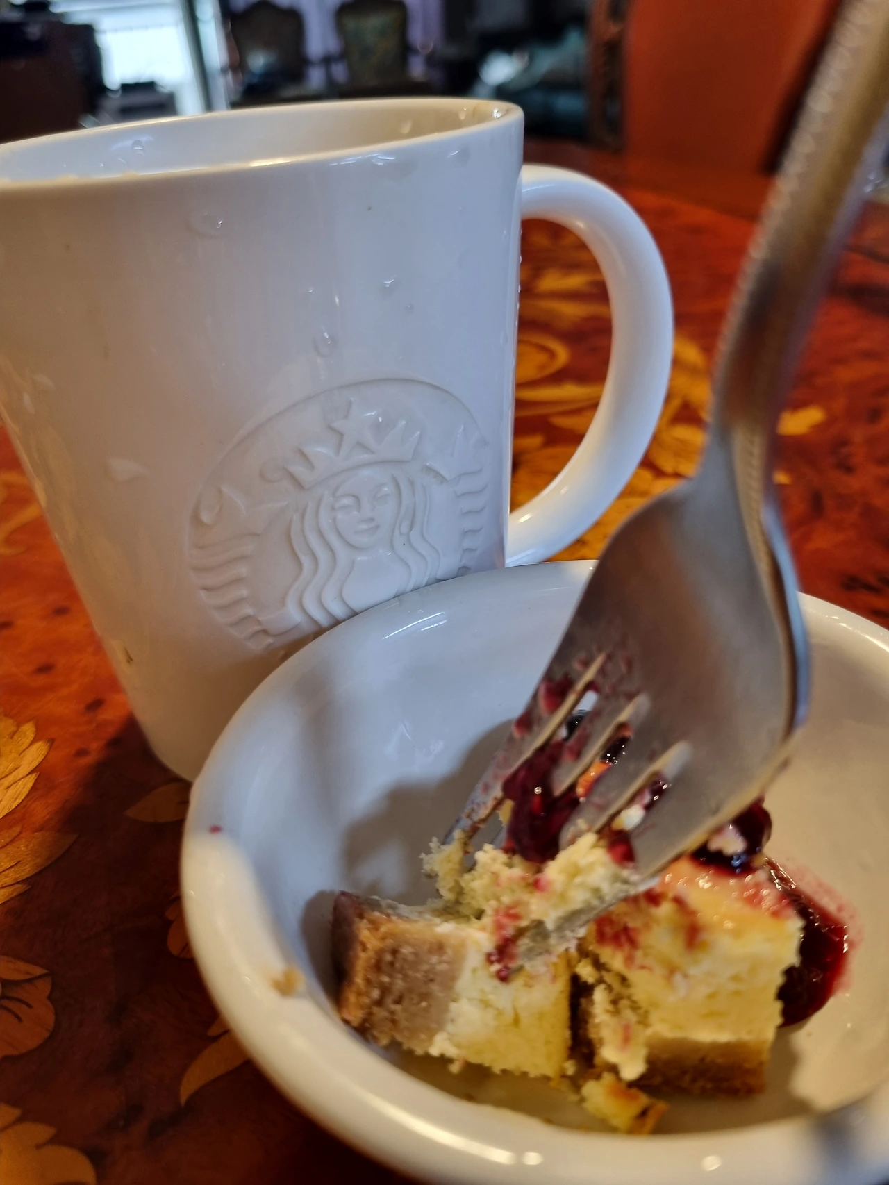 브런치 쓸까 해서 어제의 치즈케이크와 체리잼 그리고 커피 내려서 식탁에 앉아서 맞는 휴무일 아침 너무 좋은데요.