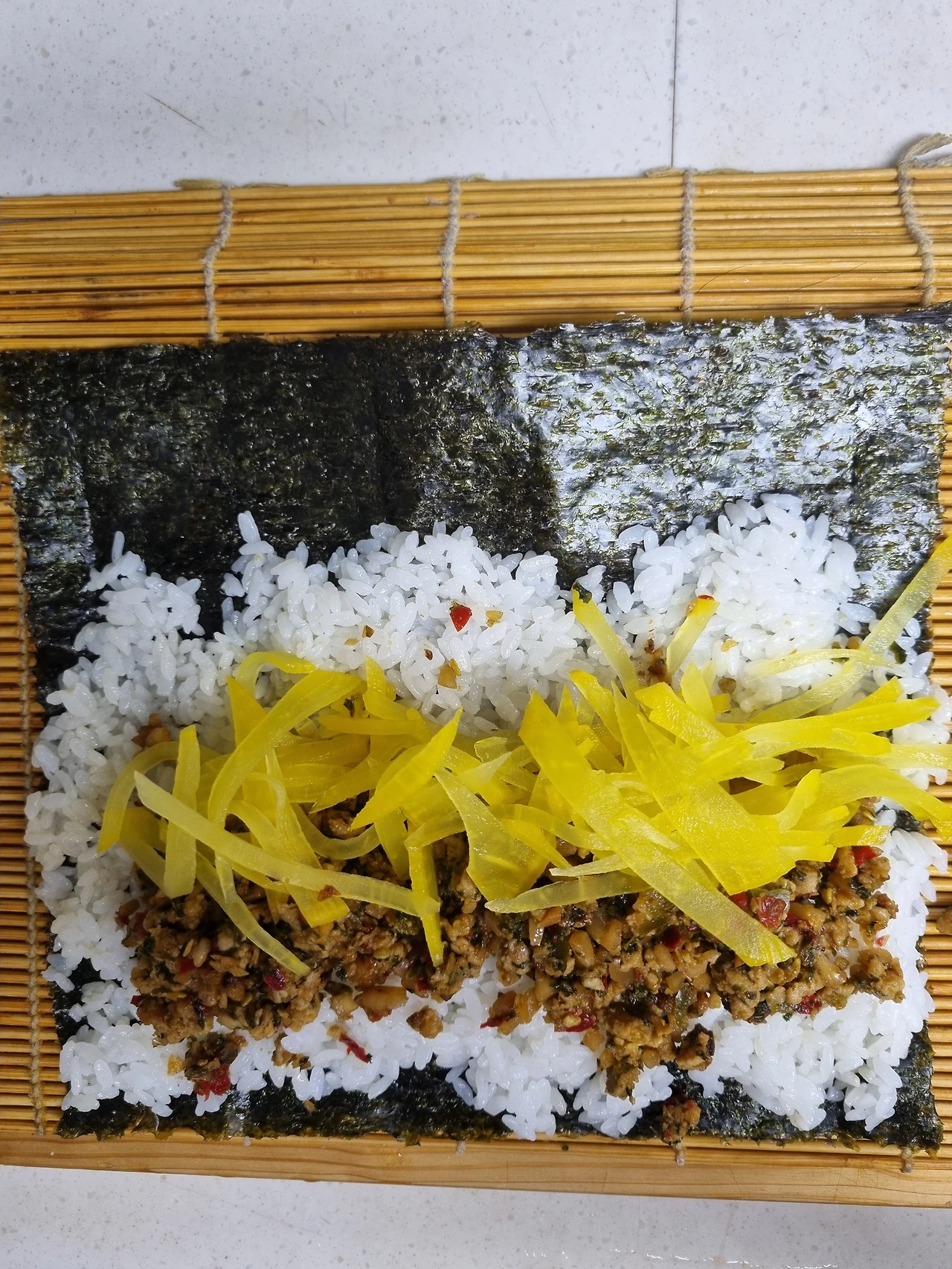 포실한 재료는 단무지를 얇게 채 썰어주시면 식감이 머취 베러.