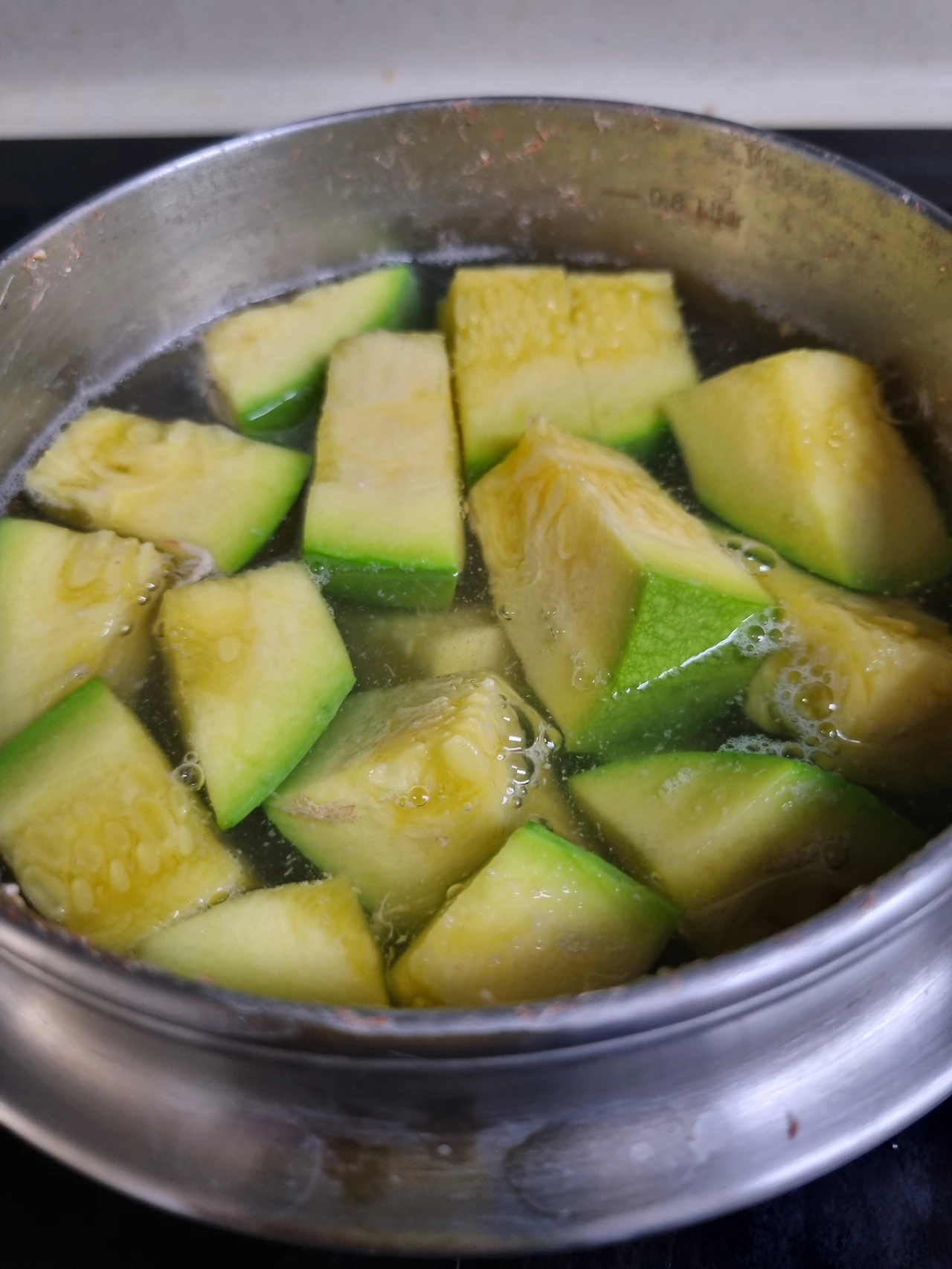삼분 정도 끓이면 호박이 투명한 연둣빛을 뿜뿜하고