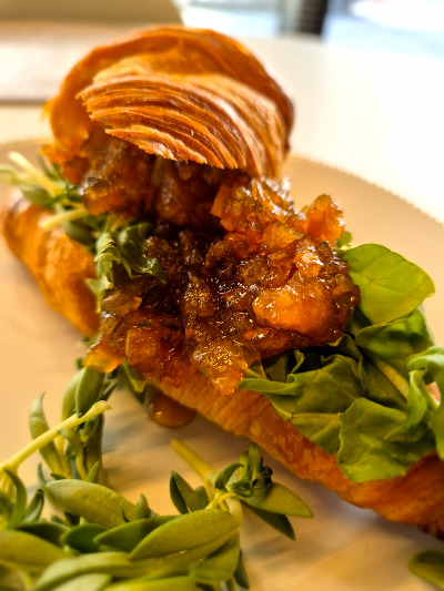부드러운 크루아상에 돌나물을 깔고 루꼴라를 얹고 사과잼을 두텁게 올리먼 상상하기 힘든