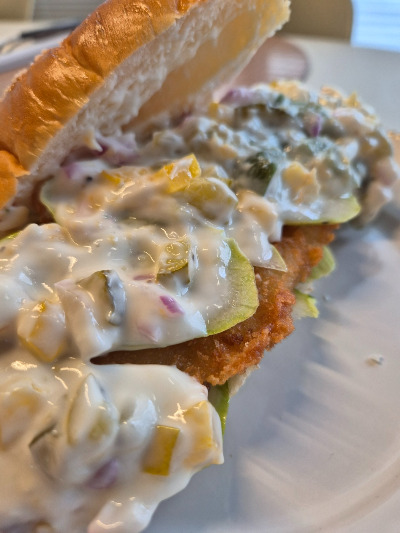 생선 커틀렛은 두툼했고 소스는 그득했다.