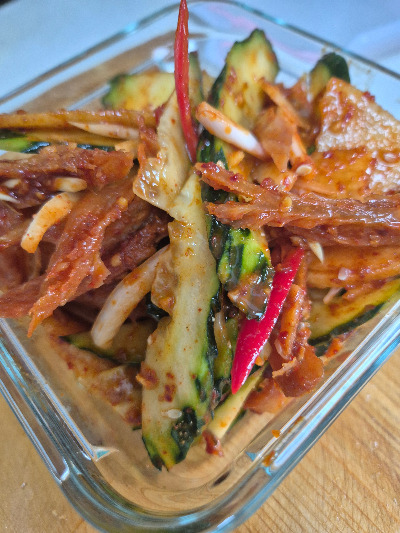 오이무침은 빨갛게 북어채는 슬쩍 빨갛게,
