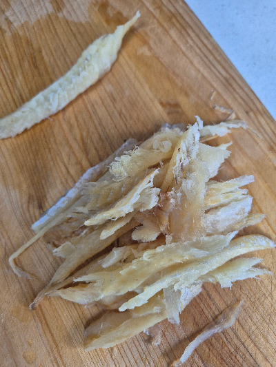 오이 무침을 대충 되었고 북어채도 무쳐볼까 싶어서 마른 북어재를 14줄 정도 잡아서 찬물에 10분 정도