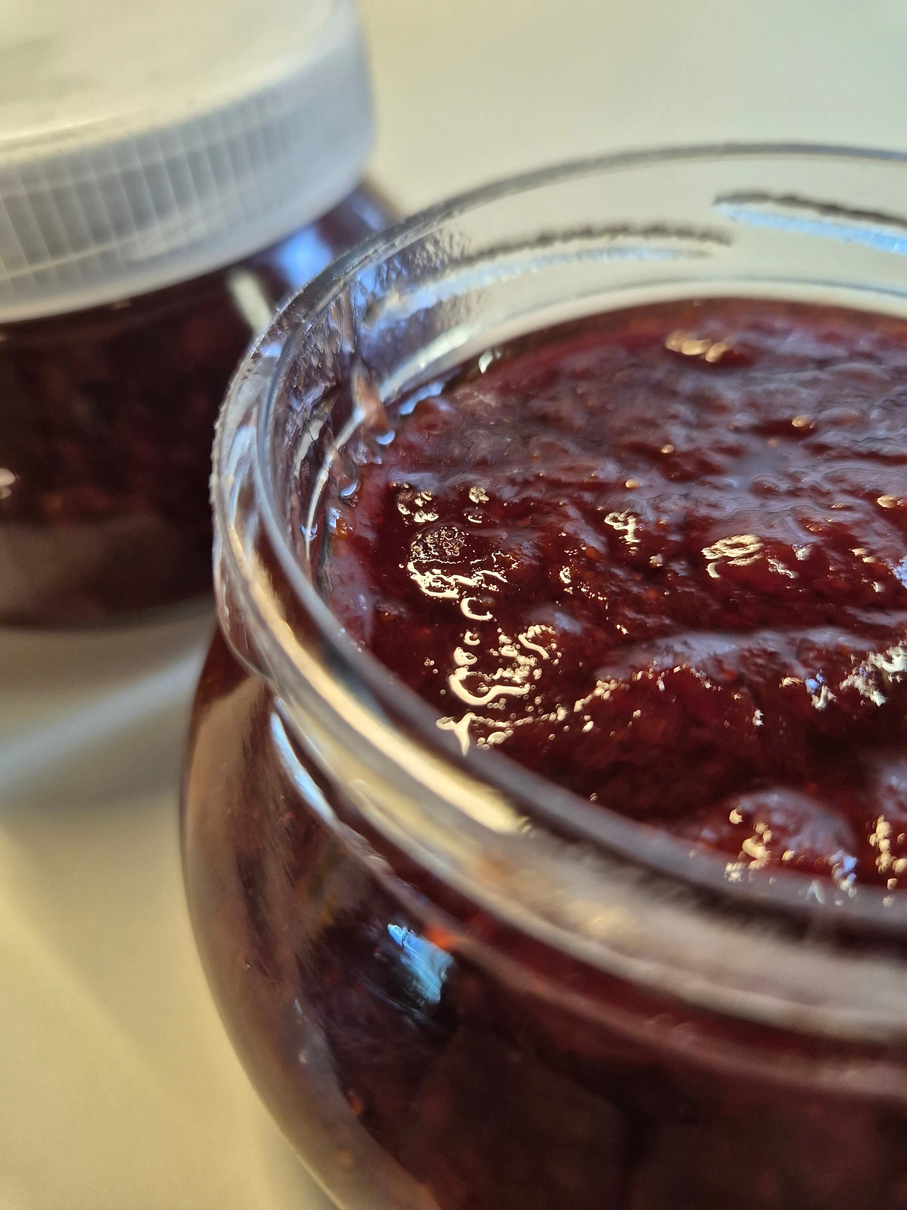 딸기잼 두병을 부어 담고