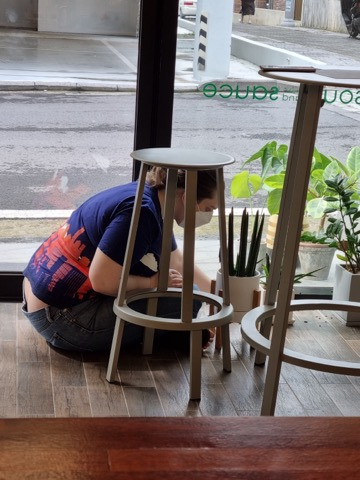 가게 손님이 화분을 엎어 놓으시고 -나를 슬쩍 쳐다보시고는- 두고 나간 화분을 보자마자 자신이 치우겠다며 저리 흙을 주워담았습니다.