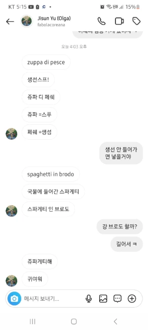 지선이가 여러 동영상 (이탈리아요리)을 몇 개 보내 주었고 저는 동영상 제목에서 zuppa (이탈리아의 걸쭉한 수프)라는 단어가 인상적이었고 유치하게 " Zuppaghetti" 어떨까 싶어서 지선이에게 넌지시 물어봤고 지선이가 우아한 이름을 하나 더 보내 주었지만 너무 우아하고 길어서 지선이도 "쥬파게티" 하라고.