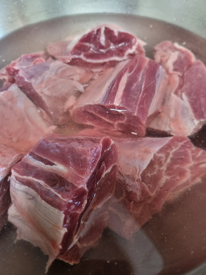 사태는 주먹 만하게 잘라서 찬물에 30분 담가둔다.