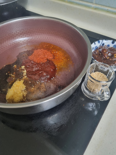고추장 - 크게 3스푼 간장 - 2 스푼 고춧가루 - 한 스푼 깨 - 한 스푼