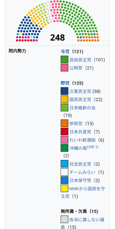결국 거국적으로 자민당에 대한 민심의 불만은 크지만 연립 가능성을 고려해도 원내에 자민당을 대체할 정당이 없으니 1당과 여당을 유지하는데 과반이 되지 않는 이상한 상황이 지속되는 것이다.