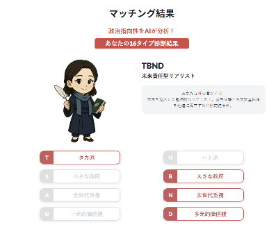 새로 테스트를 해봤다. 예전과는 여러 가지가 참 달라졌다. 일본 본위의 관점이기는 하지만, 우리나라에서도 진보적 리버럴에서 보수리버럴로 옮겨 왔다고 개인적으로는 생각한다.