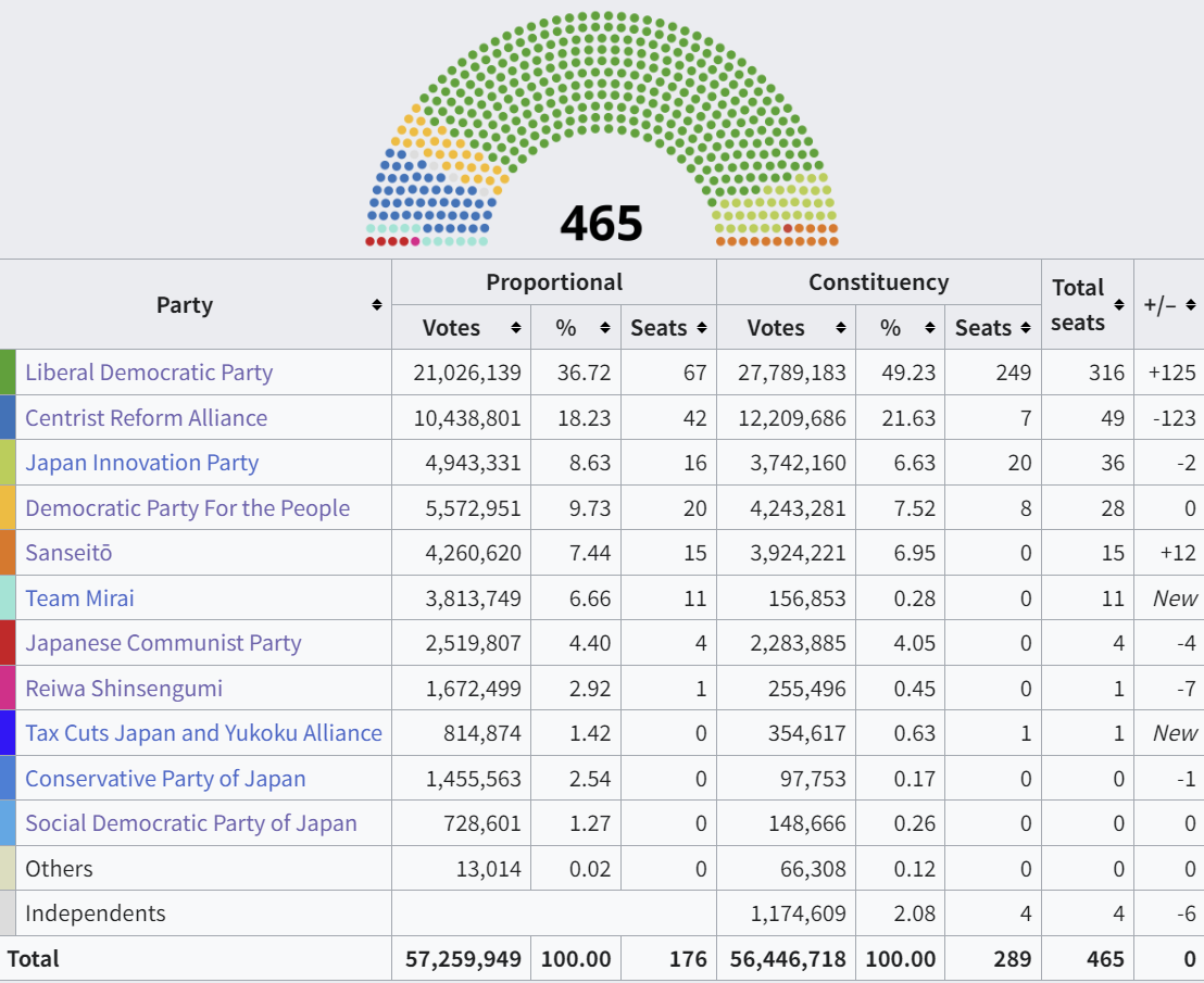 자민당이 대체 불가능했다는 점 + 중도개혁연합이 너무 심각하게 찍을 유인이 없었다는 점, 다카이치 사나에라는 정치인의 개인적인 매력 때문에 성공한 거라고 밖에는 생각이 들지 않는다.
