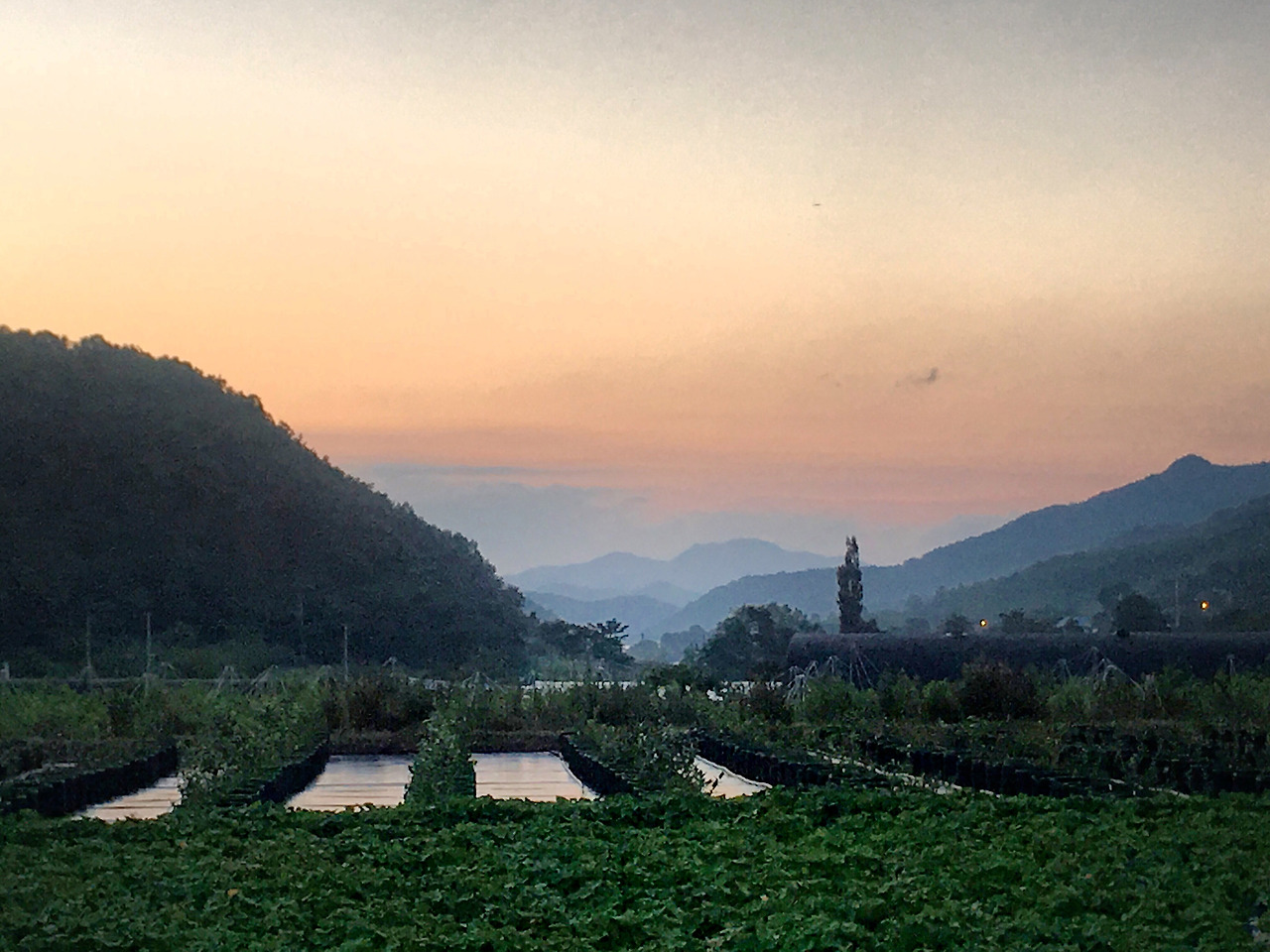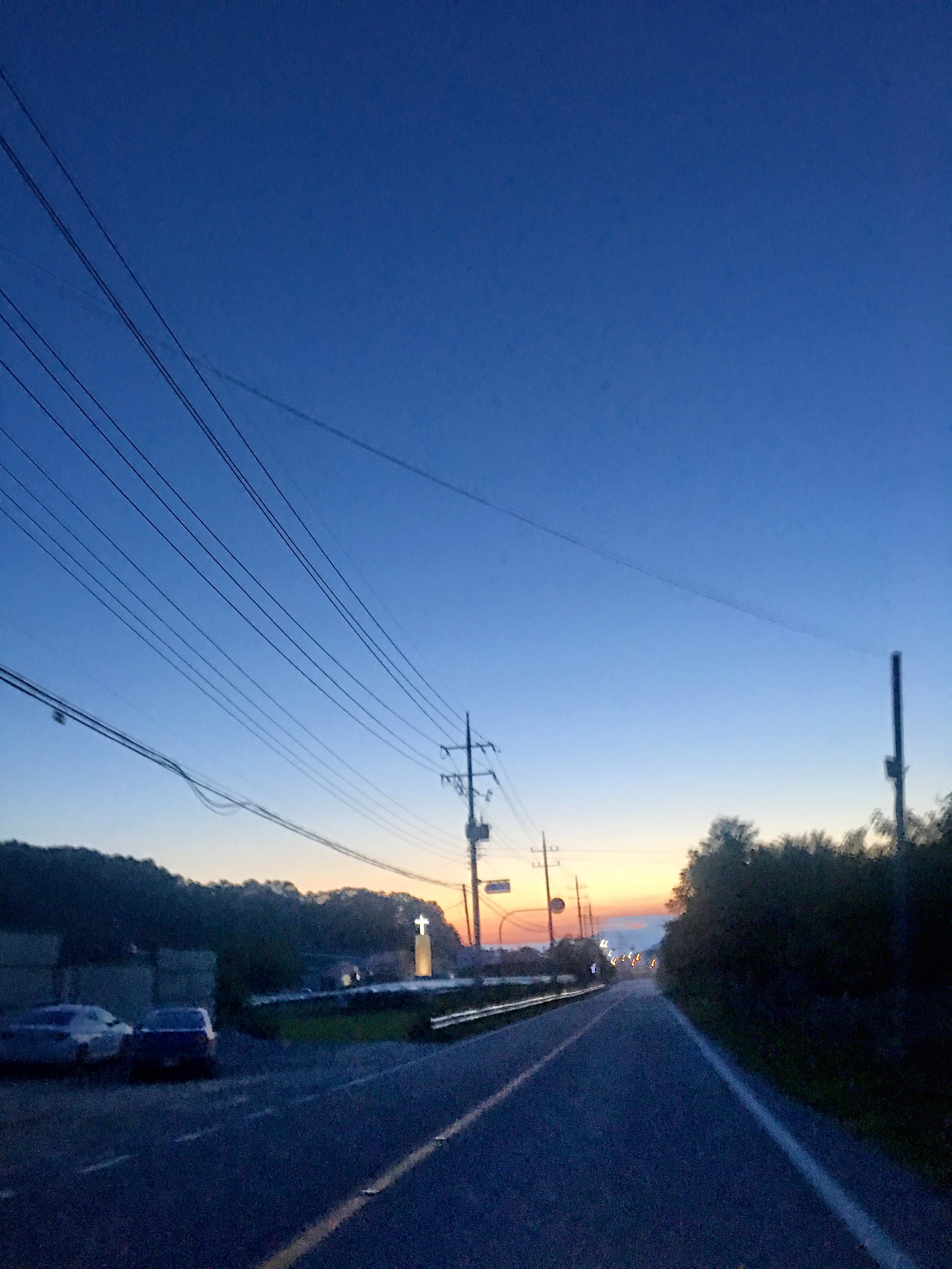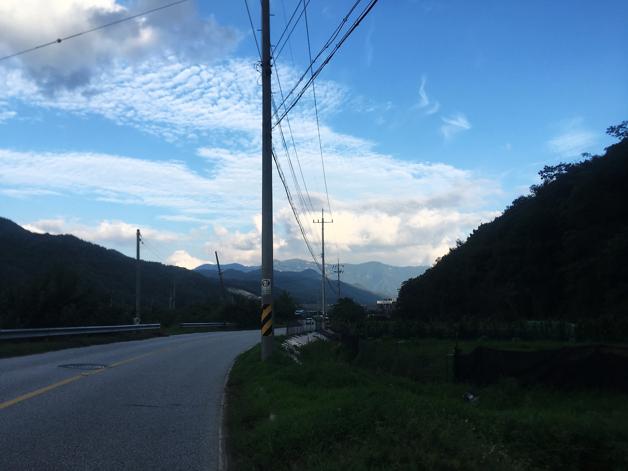 데크길이 끝나고 이어지는 길에서는 복숭아 단내가 가득했습니다. 하늘을 보니 어둑어둑 날이 저물어가고 있었고 앞에는 오르막으로 이어지는 고개가 고개를 쳐들고 있었습니다. 고개를 넘다 날이 완전히 저물 참이었습니다.