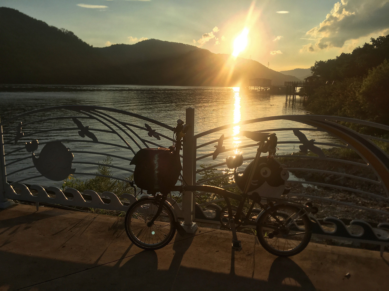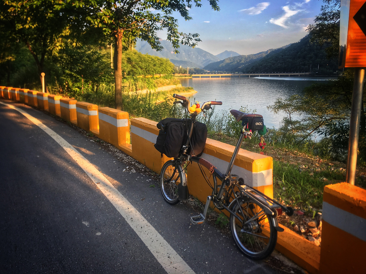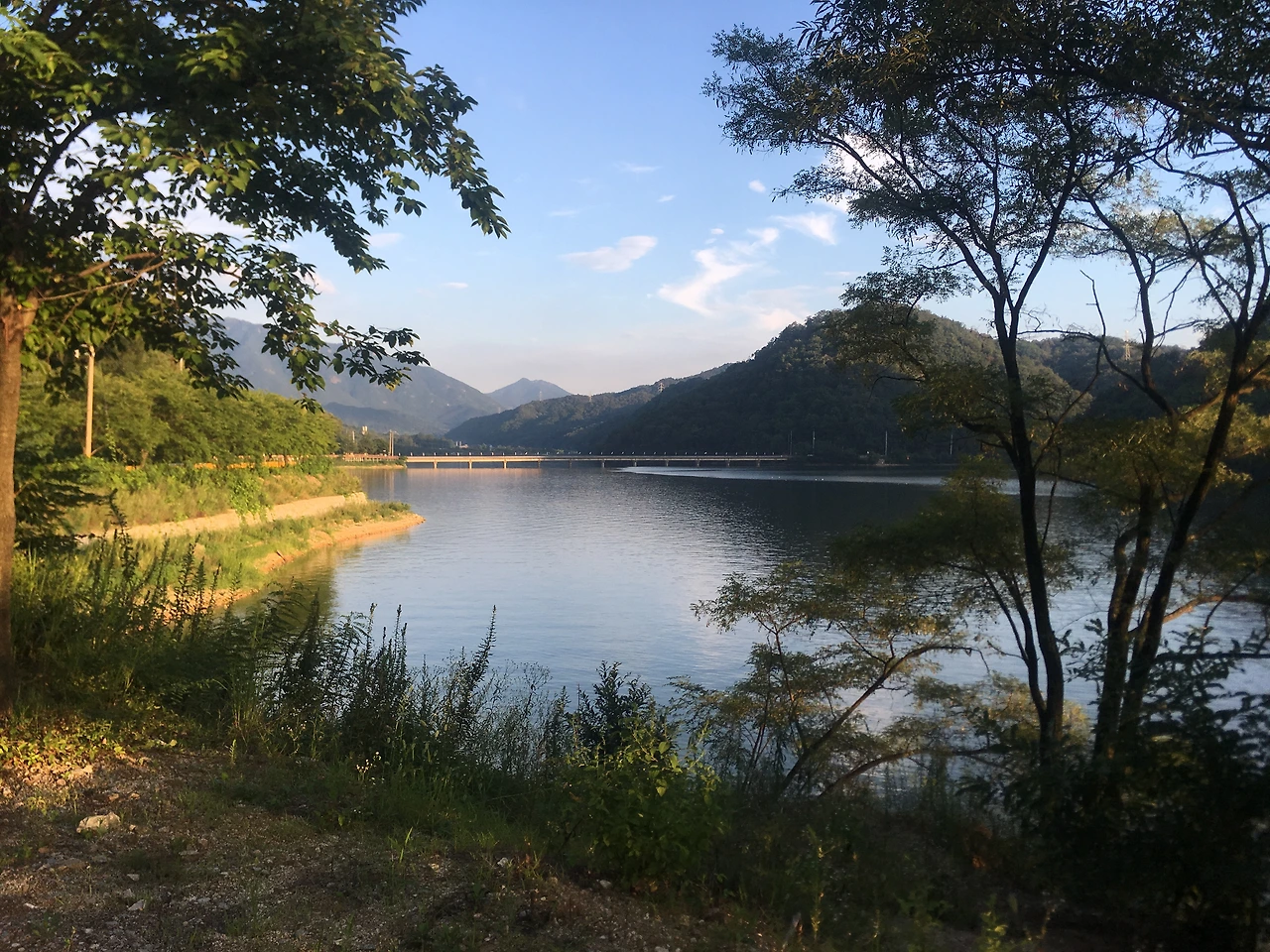10리를 좀 넘어 달려가니 작지도 크지도 않은 저수지가 눈앞에 나타났습니다. 저수지에는 노을이 길게 늘어져 있었고 보트 하나가 수상스키를 끌려고 출발하고 있었습니다.