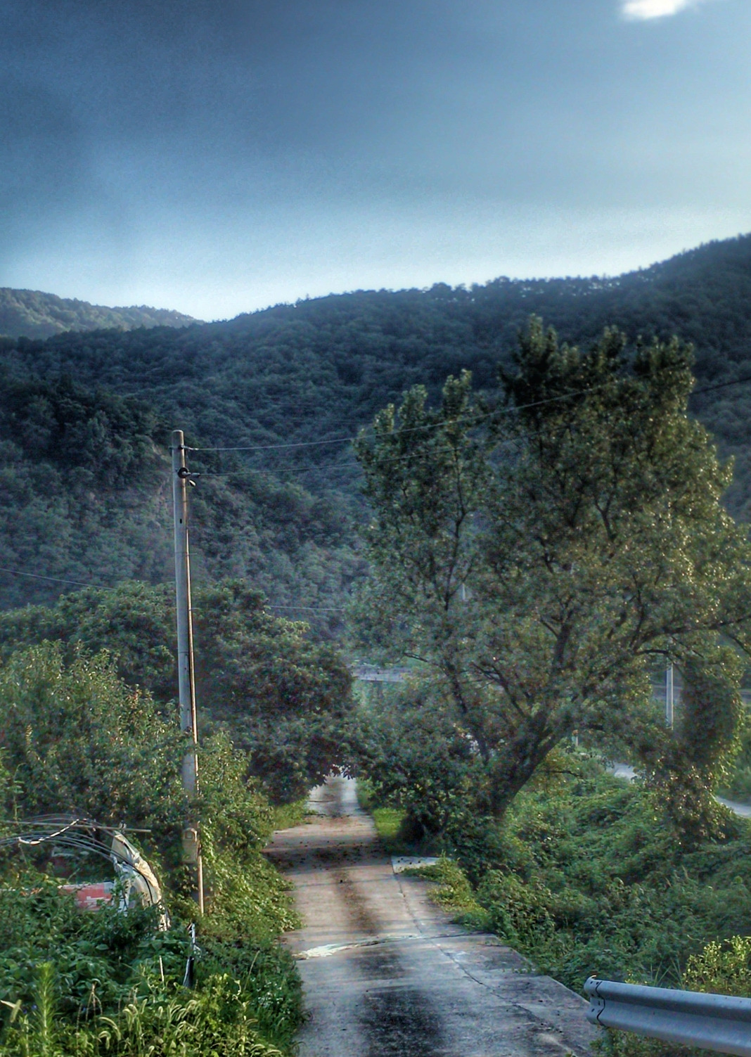 어느새 어둑어둑 날이 저물고 있었습니다. 앞에는 고개를 쳐든 고개가 하나 있었고 집으로 가기에는 아직 반도 못 왔으니.. 그래도 어떻게든 집에는 들어가겠지요. 차도보다도 어두운 시골길이 조금 걱정이기는 합니다만 가끔 개들이 짖어주기도 해서 괜찮습니다. ^^