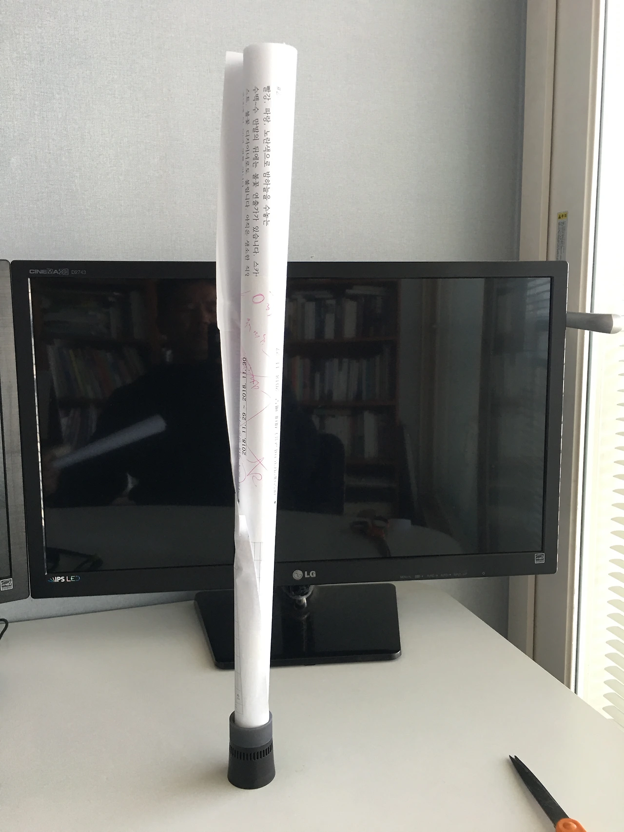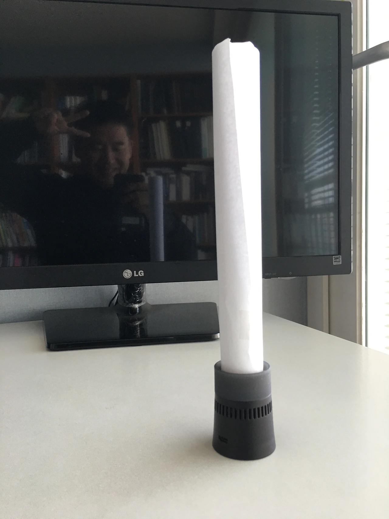 마지막으로 종이를 말아 끼워 보았습니다 뭐든 길죽하게 통으로 만들 수만 있다면 가능하겠다는 생각에서 해본 것입니다. 더군다나 종이는 울림이 좋은 재질입니다. (아래 사진)