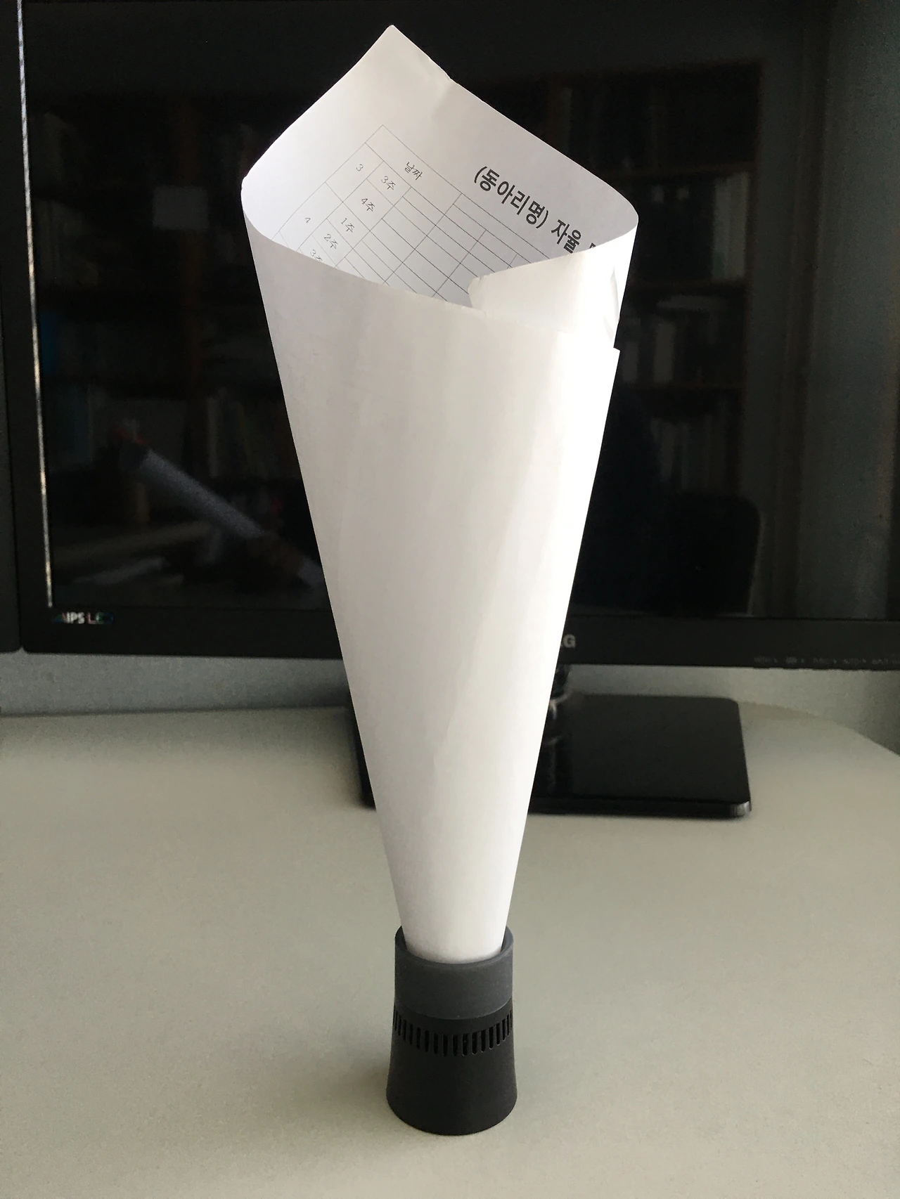 이 경우도 어지간히 좋은 블투 스피커 소리에 버금가는 결과를 들려주었습니다. 가장 좋은 소리를 낸 것은 그저 A4용지 1장을 파이프처럼 말은 것이었습니다 몇장을 이어 붙여 길게 한다고 소리가 더 좋아지지는 않았습니다. 원뿔형은 상대적으로 베이스를 낮추고 트레블을 올린듯한 소리가 났습니다 종이이다 보니 다채로운 시도가 가능하다 봅니다 시도해보시길 바랍니다
