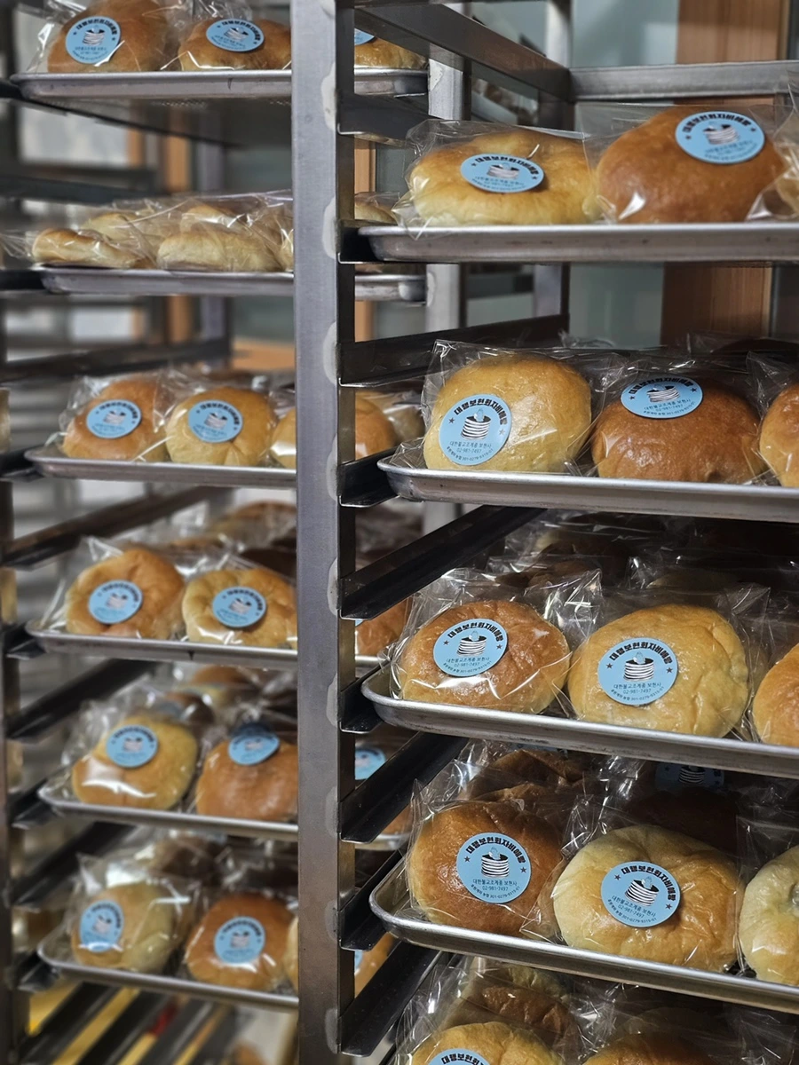 성형이 잘되어 모양이 이쁘게 나온 빵들은 이웃들에게 줄 빵으로 포장되고, 호떡처럼 모양이 조금 엉성한 애들은 우리의 입속으로 사라졌다. 갓 나온 빵을 먹어본 적이 드물었는데, 갓나온 식빵은 엄청나게 따끈하고 고소한 버터향이 감도는게 우유가 그리워질 정도였다.